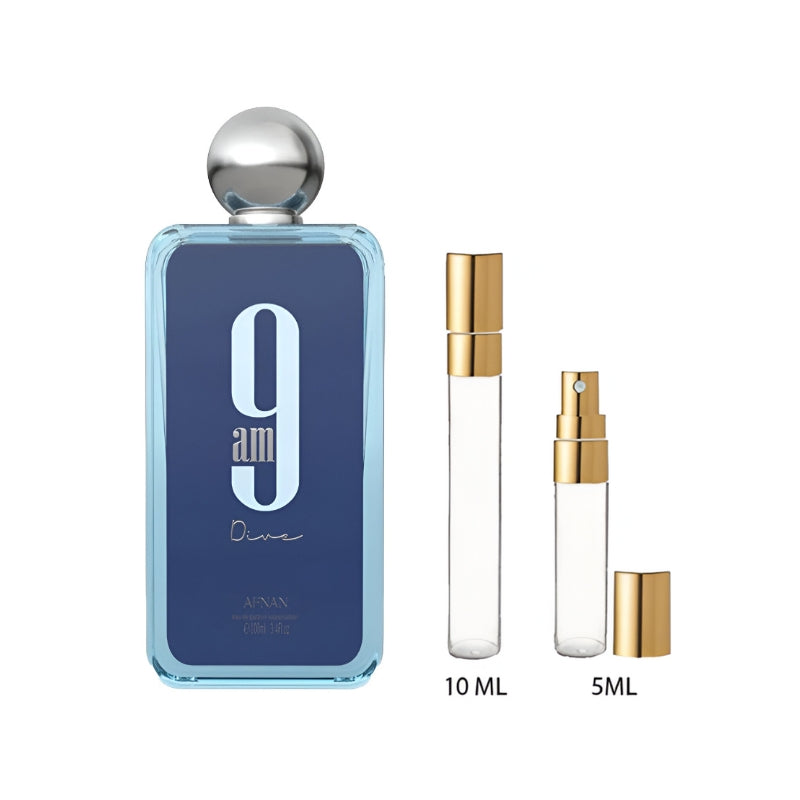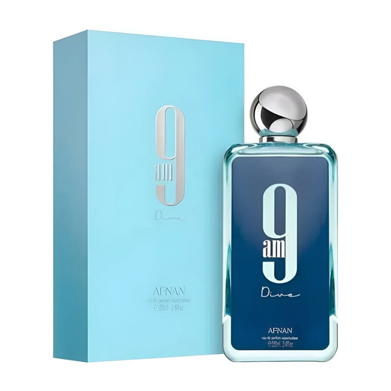 Afnan 9 AM Dive 🌊☀️ es un eau de parfum masculino fresco y vigorizante que captura la energía del mar y la vitalidad del amanecer. Ideal para el hombre moderno que busca empezar el día con frescura, estilo y dinamismo.