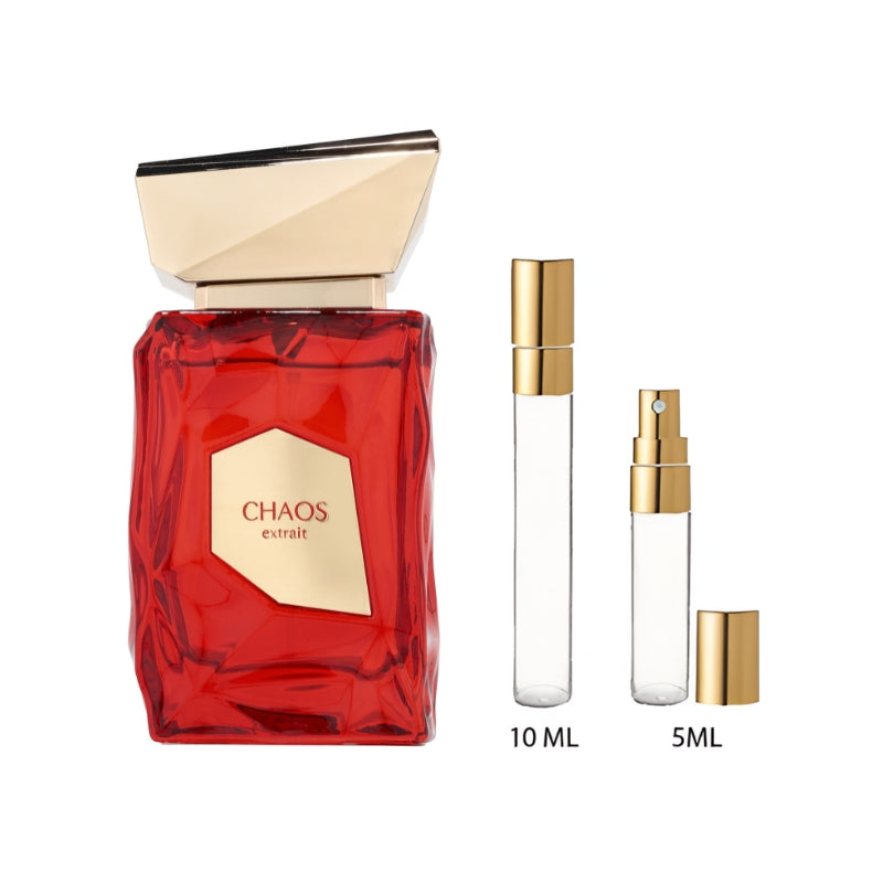 Chaos es una fragancia audaz, sensual y provocadora, pensada para quienes rompen esquemas. Abre con una explosión dulce y adictiva de cereza y frutos rojos, que captura la atención al instante. En el corazón, el iris aporta elegancia y suavidad atalcada, equilibrando la intensidad inicial. Su fondo poderoso mezcla vainilla cremosa, cuero intenso y musgo, dejando una estela misteriosa, profunda e inolvidable.